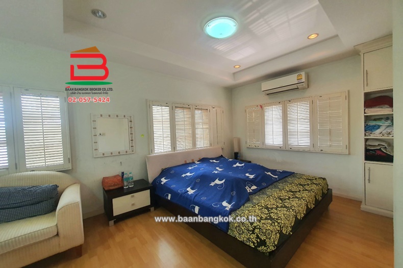 การตกเเต่ง : พื้นชั้นล่างปูพื้นกระเบื้องแกรนิตโต้ พื้นชั้นบนปูปาร์เก้ หน้าต่างเป็นไม้แท้ นำเข้าจากเมืองนอก ต่อเติมเพิ่มอีก 1 ห้องหน้าบ้าน มีเครื่องทำน้ำอุ่น 2 เครื่อง แอร์ 4 เครื่อง มีปั้มน้ำ+แท็งค์น้ำ มีบริเวณสวนหน้าบ้าน บรรยากาศร่มรื่น มีสนามหญ้า