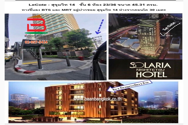 ชื่อโครงการ :  เลอโคเต้ สุขุมวิท 14  //  ซอยสุขุมวิท 14 (ซอยแพรกสามัคคี)  //  ใกล้ BTSอโศก