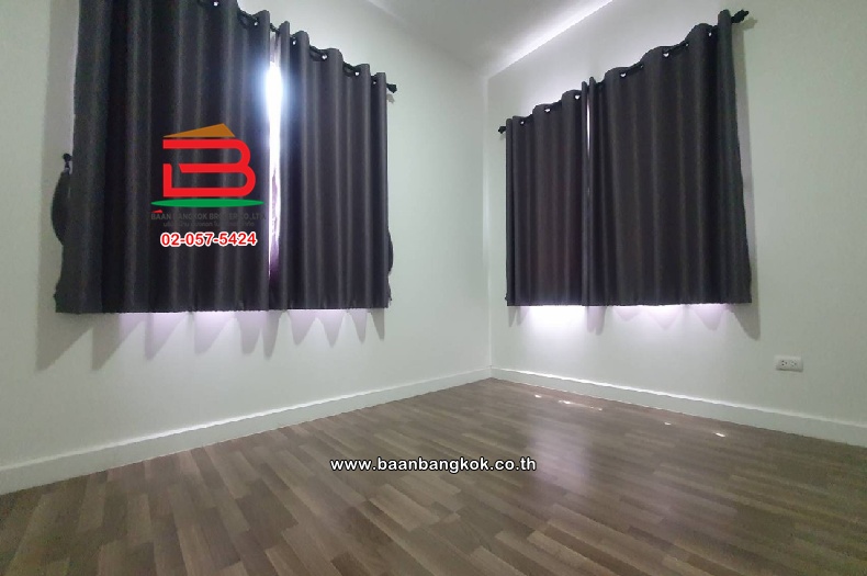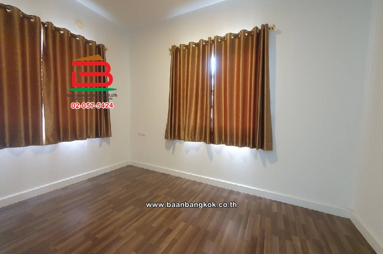 การตกแต่ง : พื้นชั้นล่างปูด้วยแกรนิโต้60X60 พื้นชั้นบนปูด้วยลามิเนต บันไดเป็นพื้นไม้ยางพาราอย่างดี ประตูหน้าต่างภายในบ้านติดกระจกบานเลื่อน+มุ้งลวด มีปั๊มน้ำ+แท็งค์น้ำ