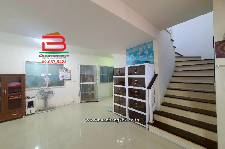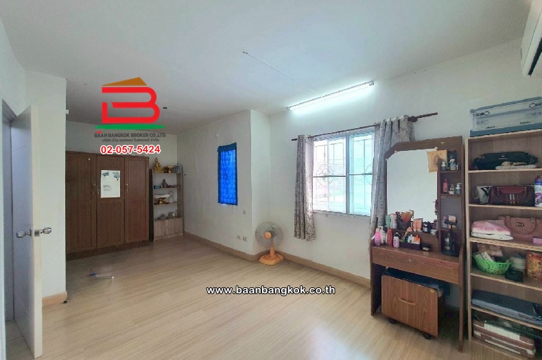 การตกเเต่ง : พื้นบ้านชั้น 1 ปูด้วยกระเบื้องแกรนิตโต้ พื้นบ้านชั้น 2 ปูด้วยลามิเนตลายไม้ มีโซฟา พร้อมแอร์ 1 เครื่อง และห้องครัว-ห้องอเนกประสงค์ มีการต่อเติม การเดินทางเข้า-ออกสะดวกสบาย ถนนในโครงการกว้าง 8 เมตร