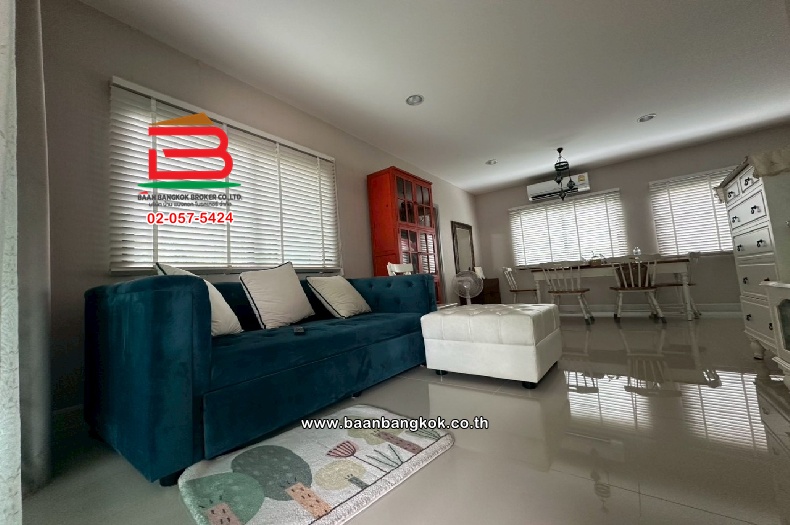 การตกแต่ง : ต่อเติมหลังคาโรงจอดรถ พร้อมสัญญาณกันขโมย และมีการตกแต่งเพิ่มเติมรองรับการอยู่อาศัยของผู้สูงอายุ เช่น ราวบันได, ราวจับข้างสุขภัณฑ์ พื้นชั้น 1 ปูด้วยกระเบื้อง พื้นชั้น 2 ปูด้วยลามิเนต ติดมุ้งลวด พร้อมแอร์ 4 เครื่อง เฟอร์นิเจอร์บางส่วน บิ้วอินตู้เสื้อผ้า-ตู้เก็บของในห้องครัว และมีปั้มน้ำ-แท็งค์น้ำพร้อมใช้งาน และมีพื้นที่รอบบ้านสามารถต่อเติมหลังคาเพิ่มเติมได้ บ้านไม่มีการตกแต่งภายในมาก ทำให้ผู้จะเข้ามาอยู่ใหม่สามารถออกแบบได้ตามใจชอบ บรรยากาศในหมู่บ้านเงียบสงบ ไม่พลุกพล่าน เหมาะแก่การพักผ่อนมากๆ ส่วนหมู่บ้านข้างๆเงียบสงบ ไม่มีการส่งเสียงจากกิจกรรมใดๆ รบกวน