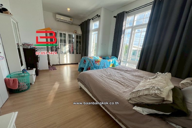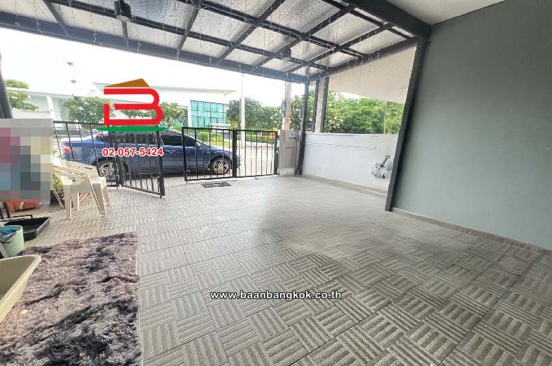 การตกแต่ง : ต่อเติมหลังคาโรงจอดรถหน้าบ้าน พร้อมทั้งปูกระเบื้องให้เรียบร้อย ส่วนด้านหลังบ้านต่อเติมครัว มีปั้มน้ำ-แท็งค์น้ำ ภายในบ้านพื้นชั้น 1 ปูด้วยกระเบื้องแกรนิตโต้ พื้นชั้น 2 ปูด้วยลามิเนต ส่วนฝ้าเพดานฉาบเรียบ ขายพร้อมเฟอร์นิเจอร์บางส่วน แอร์ 4 เครื่อง และบ้านห่างจากหน้าโครงการประมาณ 200 เมตร ติดถนนเมนโครงการ ตรงข้ามคลับเฮาส์