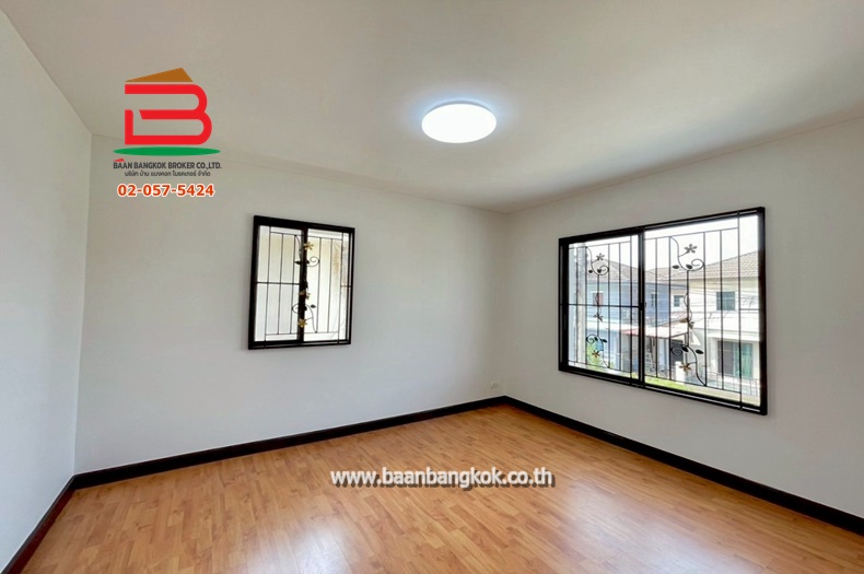 การตกแต่ง : มีพื้นที่บริเวณรอบบ้านสามารถปลูกต้นไม้ ดอกไม้ จัดสวนนั่งเล่นได้ ประตูเป็นบานเลื่อน หน้าต่างบานใหญ่ ติดเหล็กดัด+มุ้งลวดทุกบาน อากาศถ่ายเทดี พื้นชั้นล่างปูแกรนิตโต้โทนสว่าง บิ้วท์อินเคาท์เตอร์ครัว มีปั้มน้ำ+แท็งน้ำ ชั้นบนปูลามิเนตลายไม้ บันไดกว้าง ห้องนอนใหญ่ มีห้องน้ำในตัว แยกโซนเปียกแห้ง ตู้เสื้อผ้าบิ้วท์อิน ภายในโครงการมีสิ่งอำนวยความสะดวก อาทิ เช่น รปภ.24ชม. CCTV