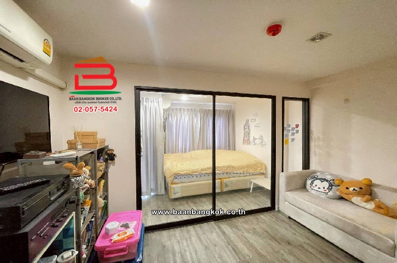 ประเภททรัพย์สิน : คอนโดมิเนียม สูง 5 ชั้น อยู่ชั้นที่ 4 มี 1 ห้องนอน 1 ห้องน้ำ 1 ห้องนั่งเล่น พร้อมเค้าเตอร์ครัวขนาดพอดี ทีวี, ตู้เย็น, โซฟา และแอร์ 2 เครื่อง ตู้เตียงบิ้วอินของโครงการ หิ้วกระเป๋าเข้าอยู่ได้เลย