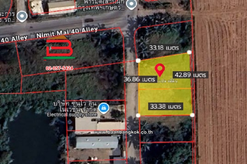 รหัสทรัพย์ 11106 : ที่ดินเปล่า เค.ซี. การ์เด้นโฮม (ซอยนิมิตใหม่ 40) **ค่าพิกัด : 13.88406411,100.73824027 และ 13.88388679,100.73823201