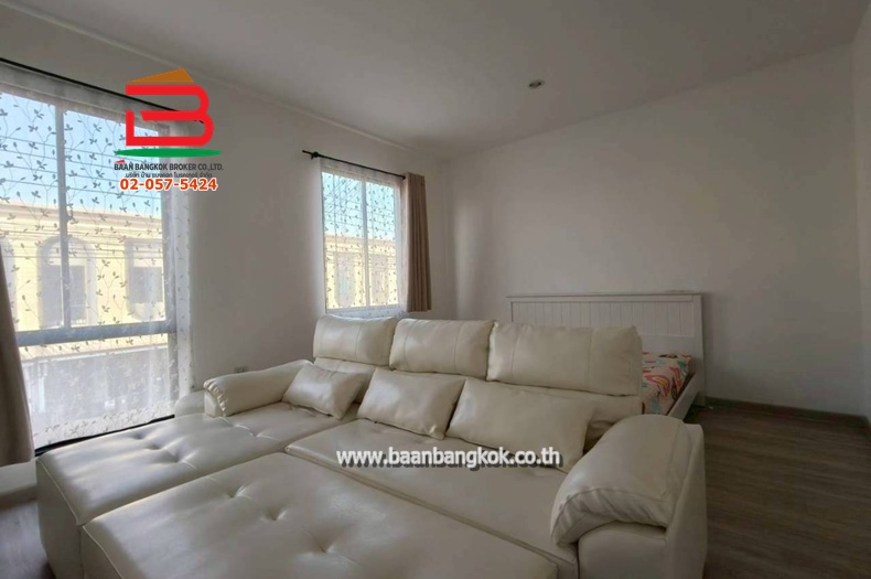ประเภททรัพย์สิน : โครงการทาวน์โฮมหรู 2 ชั้น หน้ากว้าง 5 เมตร มี 3 ห้องนอน 2 ห้องน้ำ 1 ห้องครัว 1 ห้องโถง ภายในบ้านปลอดโปร่งด้วยระยะพื้นถึงฝ้า 2.80 ม. ทั้งชั้น 1 และ 2 พื้นชั้น 1 พื้นปูเป็นวัสดุ SPC ลายไม้เนื้ออ่อน ตัวบ้านมาตรฐานจะสิ้นสุดที่ Dining Area จากนั้นจะติดประตูกระจกบานเลื่อนก่อนออกไปเจอลานซักล้าง ลานซักล้างหลังบ้านแบบมาตรฐานจะเทพื้นคอนกรีตไว้ให้ มาพร้อมระบบน้ำและถังเก็บน้ำแบบที่มีปั๊มน้ำในตัวเพื่อประหยัดพื้นที่ ห้องน้ำชั้น 1 ออกแบบมาให้รองรับการใช้งานแบบเต็มฟังก์ชัน แบ่งโซนเปียกด้วยพื้นต่างระดับพร้อมกระจกเงา อ่างล้างหน้า และโถสุขภัณฑ์ บันไดมีโครงสร้างเป็นเหล็ก ปิดลูกตั้งด้วยไม้ทาสีขาว และปูลูกตั้งด้วยไม้สีอ่อนเพื่อความ Cozy เข้ากับพื้นบ้าน โดยบริเวณชานพักจะมีหน้าต่างขนาดใหญ่ 1 บาน ช่วยรับแสงธรรมชาติเข้ามาทำให้โถงบันไดมีความสว่าง ไม่ทึบ ชั้น 2 จะแบ่งพื้นที่ห้อง Master Bedroom อยู่ฝั่งหน้าบ้านมีแอร์ตัวใหญ่ 1 ตัว และอีก 2 ห้องนอนเล็กอยู่ฝั่งหลังบ้าน พื้นบ้านยังปูด้วย SPC ห้องน้ำ 2 ห้องที่โครงการออกแบบให้แยกเป็นห้องสุขากับห้องอาบน้ำ ติดมุ้งลวด+เหล็กดัด จอดรถได้ 1 คัน หน้าบ้านหันทางทิศเหนือ การเดินทางเข้า-ออกสะดวก