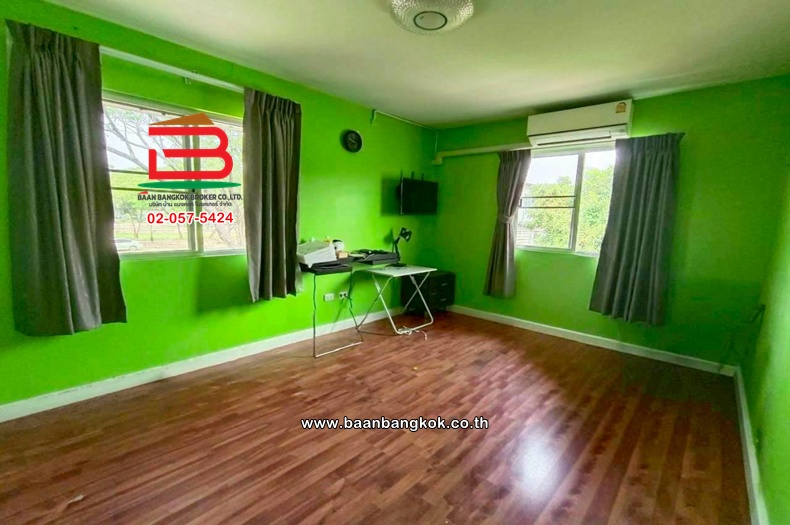 การตกแต่ง : สภาพพร้อมอยู่ พื้นล่างปูด้วยกระเบื้อง พื้นบนปูด้วยปาร์เก้ ติดมุ้งลวด-เหล็กดัด ต่อเติมครัว, ต่อเติมโรงจอดรถ พร้อมปั้มน้ำ-แทงค์น้ำ มีพื้นที่เหลือด้านข้าง ทำให้โล่ง ลมโกรกเย็นสบาย