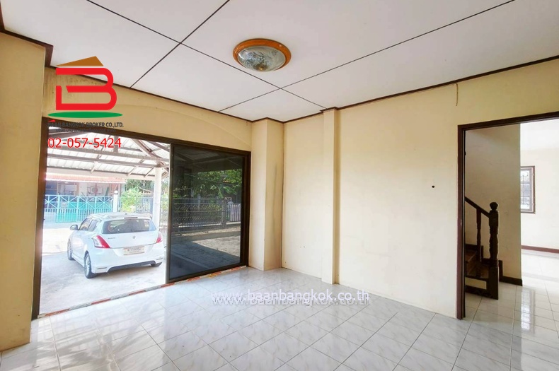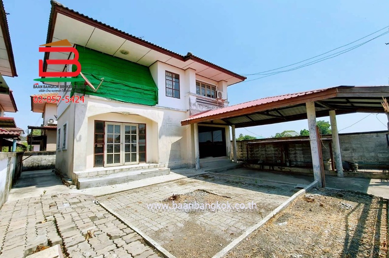 ประเภททรัพย์สิน :  บ้านเดี่ยว 2 ชั้น หลังริม มี 3 ห้องนอน 2 ห้องน้ำ 1 ห้องครัว 1 ห้องโถงรับแขก 1 ห้องทำงาน 1 ห้องทานอาหาร ชั้นบนพื้นเป็นไม้ปาร์เก้ ชั้นล่างปูด้วยกระเบื้อง ติดมุ้งลวด, เหล็กดัด, แอร์ มีระเบียงและจอดรถในบ้านได้ 1 คัน ในหมู่บ้านเงียบ บรรยากาศบ้านเป็นวิว ทุ่งนา หมู่บ้านติดกับสถานีรถไฟไทย สถานีคลองหลวงแพ่ง เป็นแหล่งชุมชนใกล้สิ่งอำนวยความสะดวก และสนามบินสุวรรณภูมิ