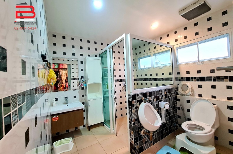 การตกเเต่ง : พื้นบ้านชั้นบนและชั้นล่างปูด้วยลามิเนต พื้นห้องครัวทั้ง2ห้องและห้องน้ำปูด้วยกระเบื้อง มีโกดังสินค้า 2 ชั้น พร้อมลิฟท์,สำนักงาน มีปั้มน้ำ+แท็งค์น้ำ+เเอร์อีก 4 ตัว+ชุดโต๊ะพร้อมเก้าอี้ 6 ชุด Build in ตู้เสื้อผ้า Build in ห้องครัว Build in ชั้นวางทีวี 1 ชุด ภายในติดเหล็กดัด+มุ้งลวด+ผ้าม่าน ภายในโครงการมีสาธารณูปโภค อาทิ สวนหย่อม,สโมสร,สนามเด็กเล่น,สระว่ายน้ำ,ระบบรักษาความปลอดภัย 24 ชั่วโมง,CCTV