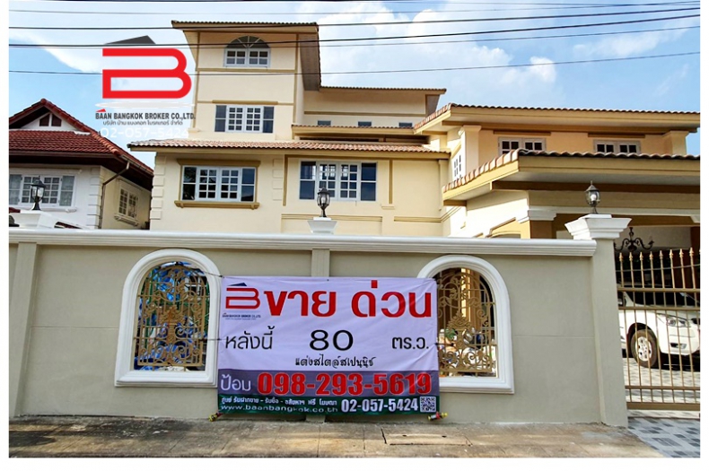 04258,  บ้านหลังใหญ่ 3 ชั้น สไตล์สเปนนิช โครงการ มณียาท่าอิฐ ทำเป็น Home Office ได้ สวย หรู ดูดี 80 ตรว. พร้อมอยู่