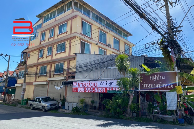 อาคารพาณิชย์ 4.5 ชั้น (2 คูหา) หลังมุม หน้ากว้าง 8x16 เมตร มี 6 ห้องนอน 6 ห้องน้ำ 1 ห้องครัว 1 ห้องพระ อาคารหันหน้าไปทางทิศตะวันออกเฉียงเหนือ จอดรถได้ 6 คัน สิ่งแวดล้อมดี ทำเลดีมาก อยู่ติดหน้าหมู่บ้านบางบัวทอง เหมาะสำหรับทำเป็นโฮมออฟฟิศสำนักงาน,ทำธุรกิจค้าขายหรือเอาไว้อยู่อาศัย การเดินทางเข้า-ออกสะดวกมากได้หลายช่องทาง