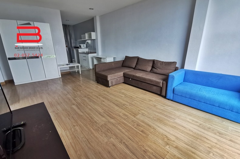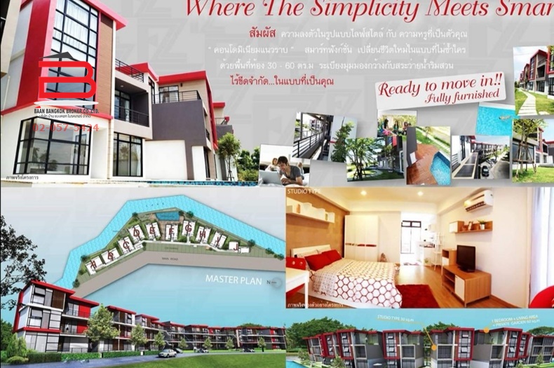 การตกแต่ง : พื้นห้องปูด้วยลามิเนต Build in ห้องครัว ภายในมีเครื่องทำน้ำอุ่น+เตียงนอน+ที่นอน+โซฟา+ตู้เสื้อผ้า+โต๊ะเครื่องเเป้ง+ทีวี+ชั้นวางทีวี+ตู้เย็น พร้อมแอร์อีก 2 ตัว ภายในโครงการมีสาธารณูปโภค อาทิ ที่จอดรถ,สระว่ายน้ำ,สวนหย่อม,