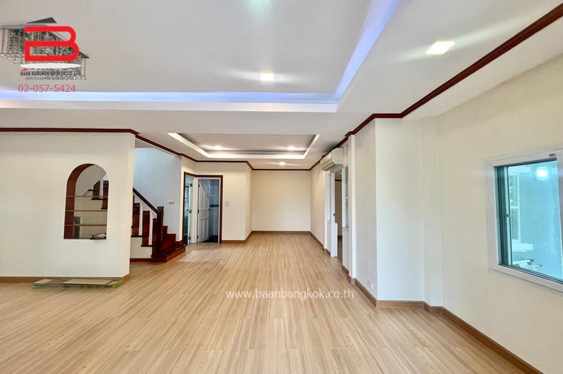 การตกแต่ง : บ้านรีโนเวทใหม่ทั้งหลัง พื้นชั้นล่างปูด้วยลามิเนต พื้นชั้นบนปูด้วยปาร์เก้ มีพื้นที่ใช้สอยเยอะ ต่อเติมเคาท์เตอร์ทั้งครัวไทยและครัวนอก บิ้วท์อินครัว ติดเหล็กดัด+มุ้งลวด+วอเปเปอร์+ปั้มน้ำ+แท็งค์น้ำ พร้อมแอร์ 5 เครื่อง ภายในโครงการมีสิ่งอำนวยความสะดวกอีกมากมาย อาทิ เช่น สระว่ายน้ำ สนามเด็กเล่น รปภ.24ชม. CCTV สโมสร