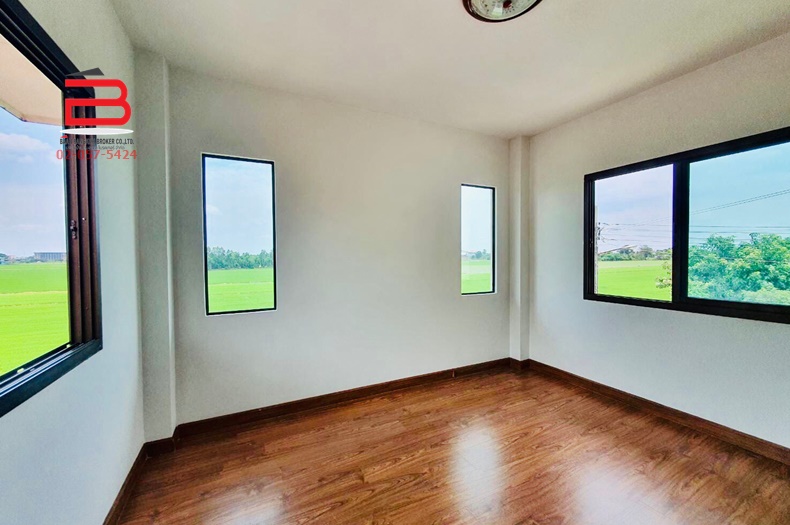การตกเเต่ง : พื้นชั้นล่างปูแกรนิตโต้ พื้นชั้บนปูลามิเนตลายไม้ พื้นบันไดหินอ่อน ราวบันไดเป็นสแตนเลสแข็งแรง แอร์ 1 ตัว ภายในหมู่บ้านมีสาธารณูปโภคครบครัน อาทิ รปภ.24ชั่วโมง, CCTV, สนามเด็กเล่น
