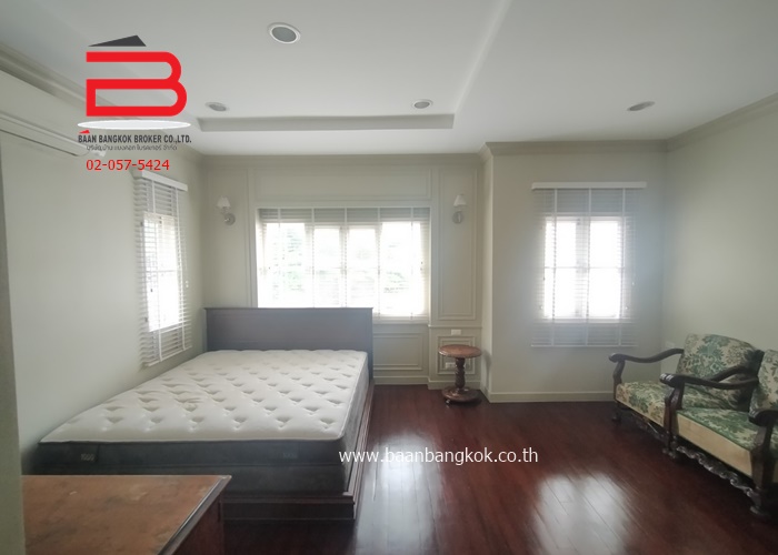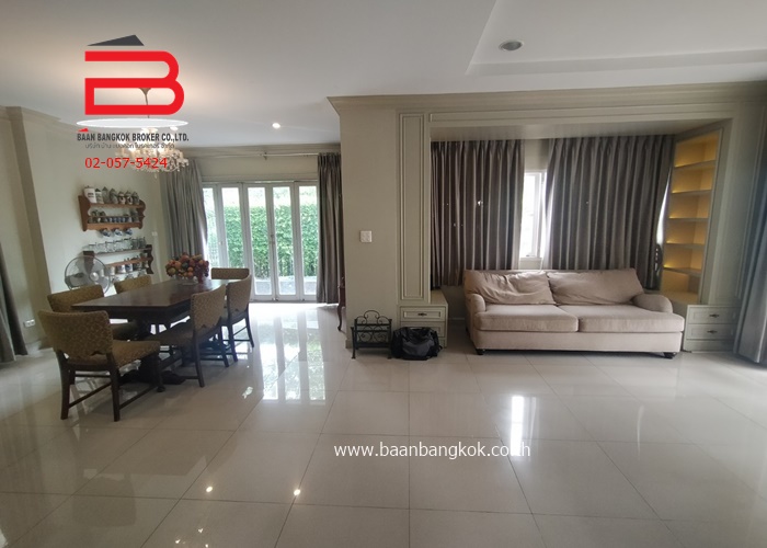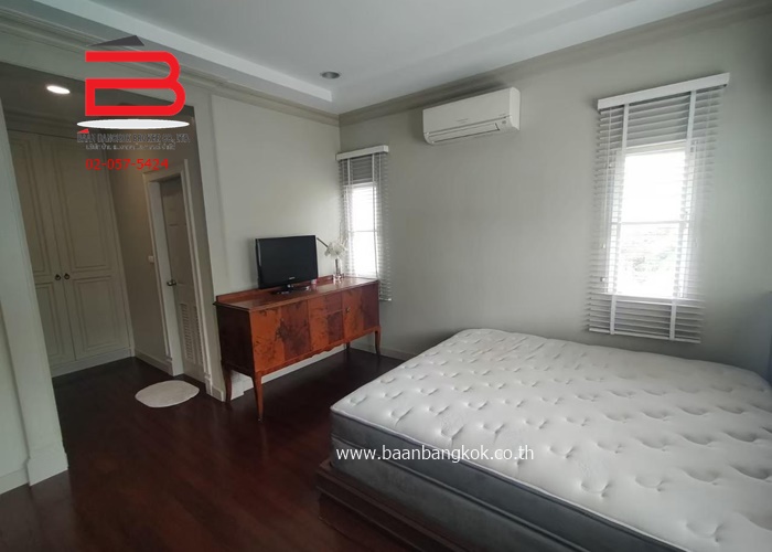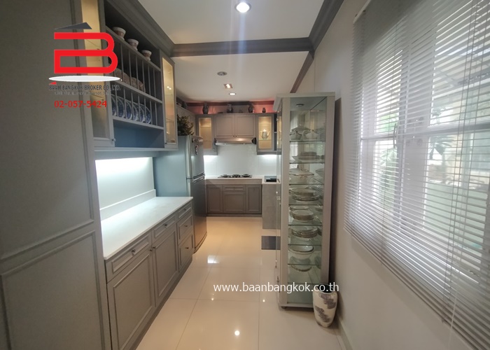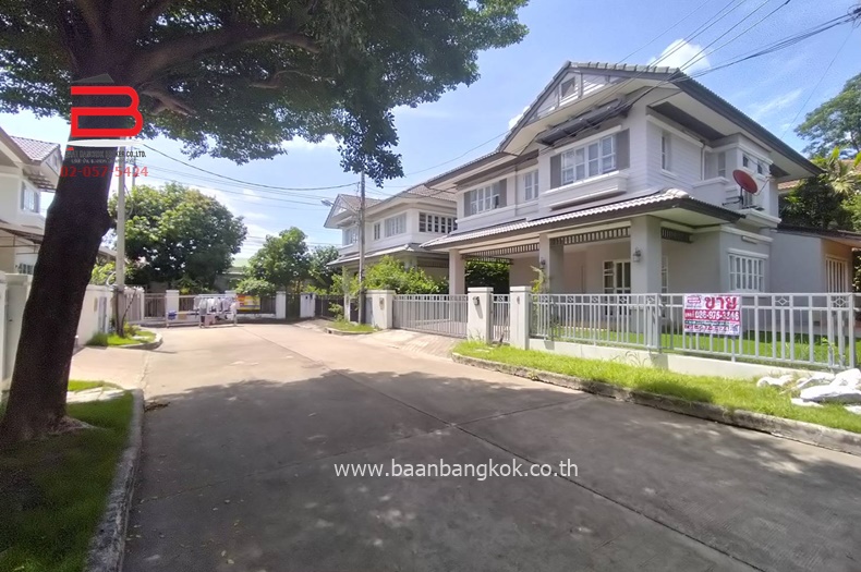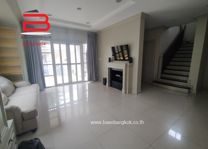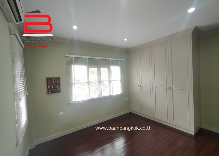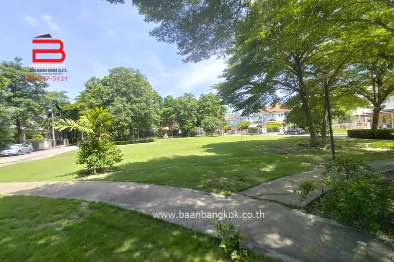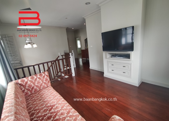 การตกแต่ง : พื้นบ้านชั้นบนปูด้วยไม้แดง พื้นบ้านชั้นล่างปูด้วยแกรนิตโต้ ตู้เสื้อผ้าและห้องครัวเป็น Build In สวยมาก มีตู้เสื้อผ้า+ปั้มน้ำ+เเท็งค์น้ำ+เเอร์ 5 ตัว+ชั้นในห้องรับแขก ส่วนห้องน้ำกั้นด้วยกระจกแยกส่วนแห้ง-เปียก ภายในโครงการมีสาธารณูปโภค อาทิ สโมสร,สวนสาธารณะ,สนามเด็กเล่น,รปภ.24 ชั่วโมง,CCTV