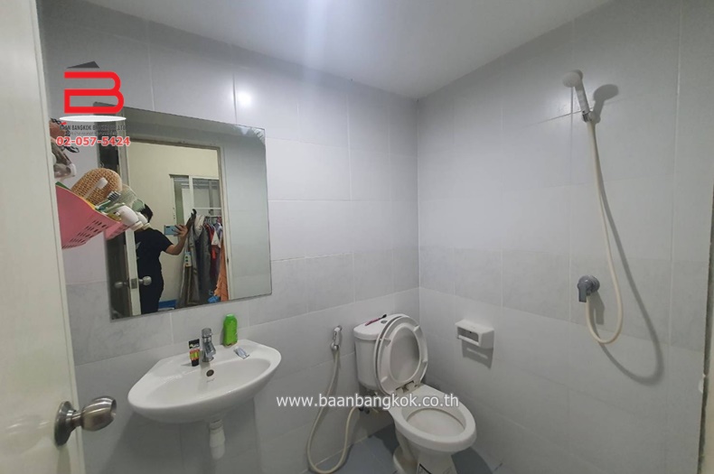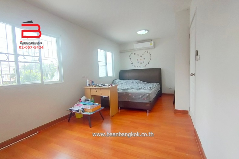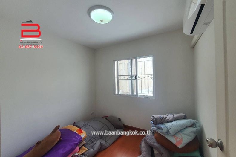 การตกแต่ง : ภายในบ้านมีพื้นที่ใช้สอยเหมาะกับวิถีชีวิตในปัจจุบัน ชั้นล่างมี 1 ห้องนอน เหมาะเป็นห้องทำงานหรือห้องผู้สูงอายุได้เป็นอย่างดี ห้องน้ำ 1 ห้องครัว1 ห้อง ชั้นบนมี 3 ห้องนอน 1 ห้องน้ำ พื้นปูกระเบื้องลามิเนต ติดเหล็กดัด มีปั้มน้ำ+เเท็งค์น้ำ พร้อมแอร์ 3 เครื่อง ภายในโครงการมีสาธารณูปโภค อาทิ เช่น รปภ.24ชั่วโมง