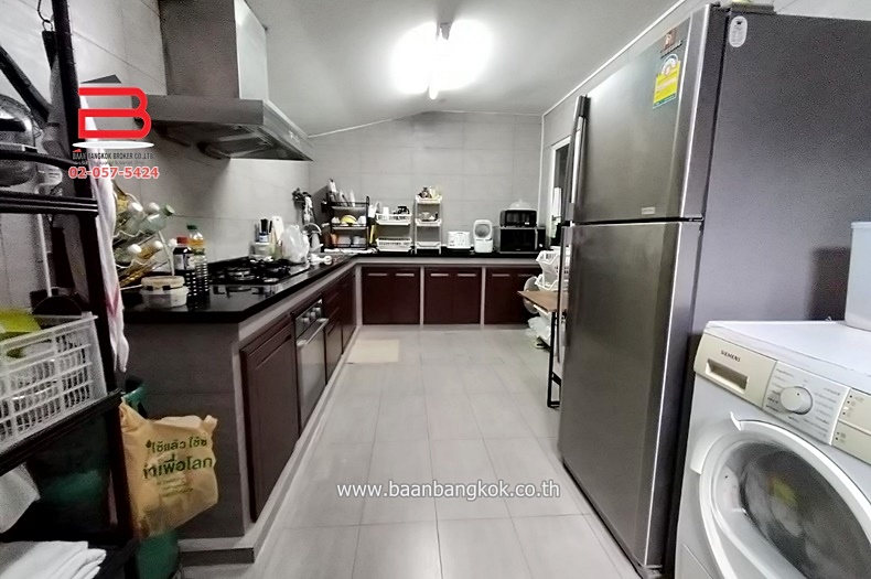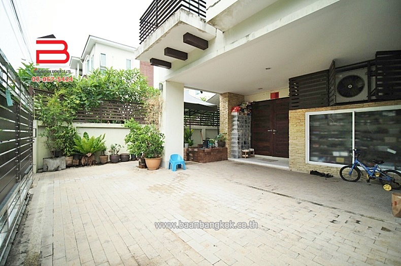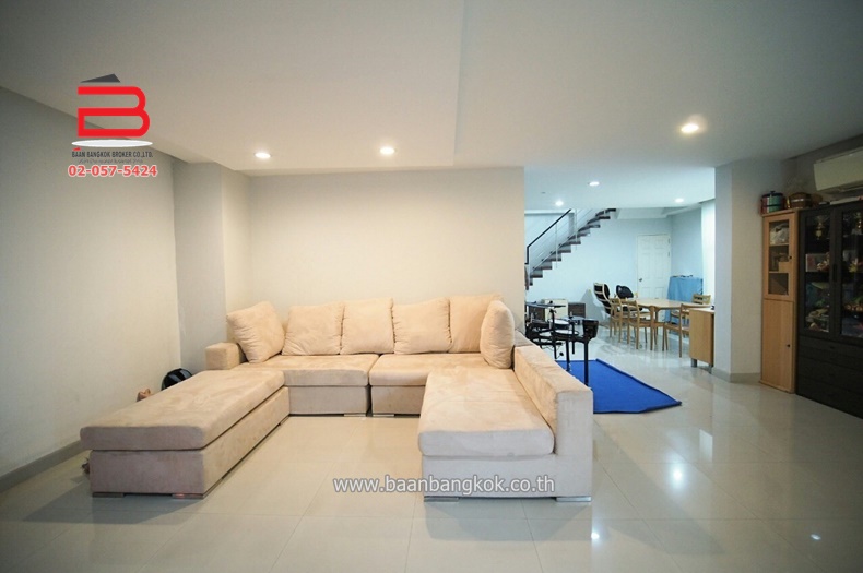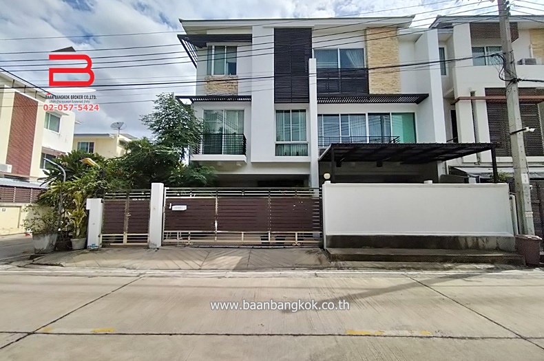 การตกแต่ง : เฟอร์ฯบางส่วน ชั้นที่ 1 พื้นปูแกรนิตโต้ เพดานสูง โปร่ง ต่อเติมหน้าบ้านที่จอดรถ ต่อเติมเคาน์เตอร์ครัว ครัวไทยและครัวฝรั่ง มีพื้นที่ซักล้าง ชั้น 2-3 ปูพื้นไม้ลามิเนต บันไดไม้แท้ ติดมุ้งลวด+เหล็กดัด มีปั้มน้ำ+แท็งค์น้ำ แอร์ 5 เครื่อง พื้นที่กว้างขวาง รองรับการอยู่อาศัยแบบเป็นครอบครัว ตัวบ้านภายนอกคลุมโทนด้วยสีเอิร์ธโทนให้ความรู้สึกอบอุ่น พร้อมการออกแบบบ้านสไตล์โมเดิร์นที่ทันสมัย ด้วยการนำวัสดุคล้ายปูนเปลือยสีน้ำตาลอ่อนมาตกแต่งหน้าบ้าน ตัดสลับกับแผง facade สีน้ำตาลเข้ม ทรงสี่เหลี่ยมผืนผ้า พร้อมติดตั้งช่องกระจกระบายอากาศแบบบานกระทุ้งและหน้าต่างกระจกบานเลื่อนขนาดใหญ่ และภายในโครงการมีสาธารณูปโภคครบครัน อาทิ คลับเฮ้าส์, สระว่ายน้ำ, ระบบ Keycard Access, CCTV, รปภ.24 ชม., ห้องออกกำลังกาย, สวนสาธารณะ, สนามเด็กเล่น