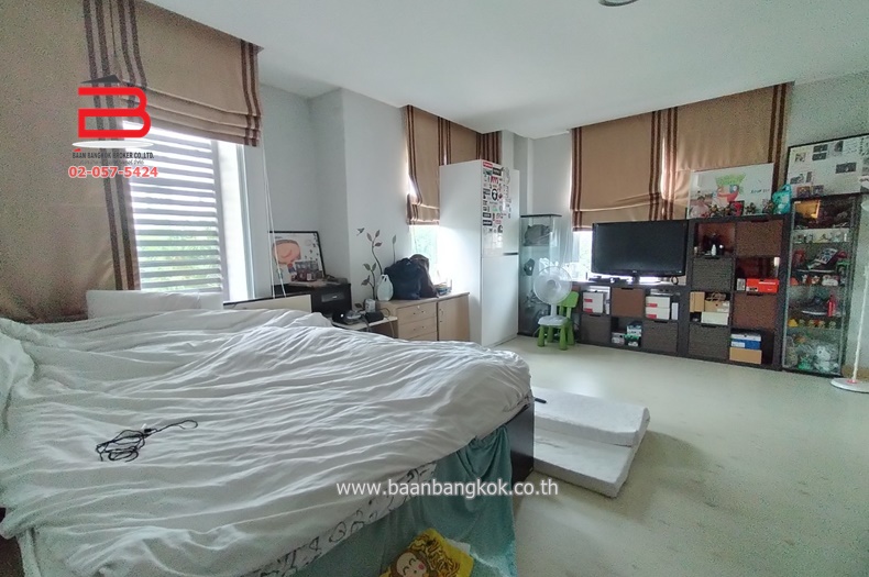 ประเภททรัพย์สิน : บ้านแฝด 3 ชั้น หลังมุม มี 5 ห้องนอน 6 ห้องน้ำ 1 ห้องครัว 1 ห้องรับแขก 1 ห้องพระ 1 ห้องทานอาหาร มีระเบียง จอดรถในบ้านได้ 3 คัน หน้าบ้านอีก 3 คัน บ้านหันหน้าทางทิศเหนือ หน้าบ้านกว้าง 11 เมตร ลึก 14 เมตร