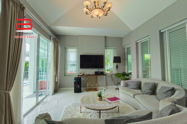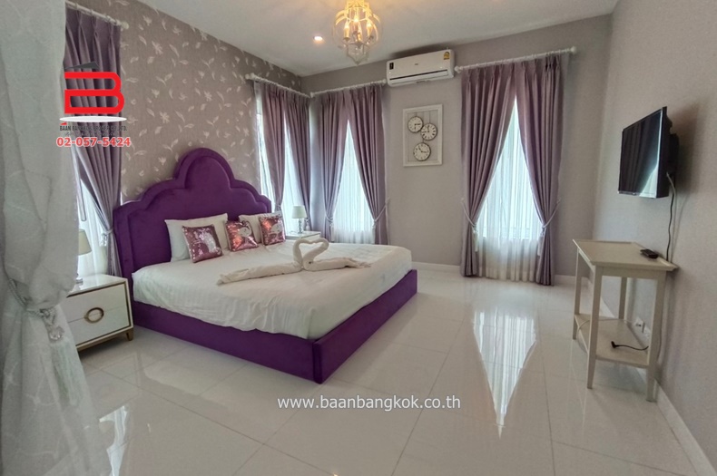 ประเภททรัพย์สิน : บ้านเดี่ยว 1 ชั้น พร้อมอยู่ มี 4 ห้องนอน 4 ห้องน้ำ 1 ห้องครัว 1 ห้องรับแขก+ห้องนั่งเล่น มีสระว่ายน้ำส่วนตัวระบบจากุชชี่น้ำล้น+สปา คาราโอเกะ โต๊ะพลู พร้อมอุปกรณ์ทำครัว แอร์ 6 เครื่อง พร้อมเฟอร์หิ้วกระเป๋าเสื้อผ้าอย่างเดียว บ้านหันหน้าทิศตะวันตกเฉียงเหนือ มีที่จอดรถ ภายในโครงการมี รปภ.24 ชม. เป็นหมู่บ้านปิด+ระบบกล้องวงจรปิด การเดินทางเข้า-ออกสะดวก