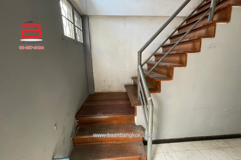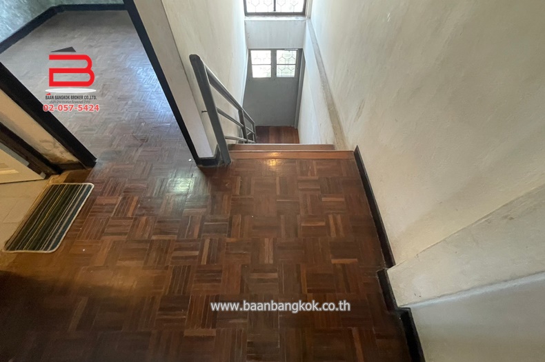 การตกเเต่ง : พื้นล่างปูกระเบื้องเซรามิค บันไดไม้พร้อมราวบันได ฝ้า T-BAR พื้นบนปูปาร์เก้ ฝ้า T-BAR มีระเบียงชั้น 2 ภายในติดมุ้งลวด+เหล็กดัด มีปั้มน้ำ ที่จอดรถเทพื้นปูนขัดหยาบ และหลังบ้านสามารถทำเป็นครัวเปิดได้