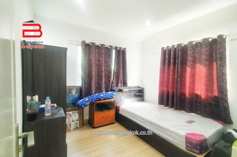 การตกเเต่ง : ภายในบ้านมีฟังก์ชั่นพื้นที่ใช้สอยเยอะ *ชั้น 1 มี 1 ห้องนอน 1 โถงรับแขก 1 ห้องน้ำ 1 ห้องครัว *ชั้น 2 มี 1 ห้องนอนใหญ่+ห้องน้ำในตัว และ 2 ห้องนอนเล็ก 1 ห้องน้ำส่วนกลางและโถงนั่งเล่น ภายในติดมุ้งลวด+เหล็กดัด มีปั้มน้ำ+แท็งค์น้ำ ภายในโครงการมีสิ่งอำนวยความสะดวก อาทิ รปภ.24ชั่วโมง,CCTV,สนามเด็กเล่น, สระว่ายน้ำ, สวนหย่อม