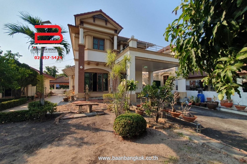 ประเภททรัพย์สิน : บ้านเดี่ยว 2 หลัง 2 ชั้น หลังมุม หน้ากว้าง 16 เมตร ลึก 32.5 เมตร มี 3 ห้องนอน 3 ห้องน้ำ 1 ห้องครัว 1 ห้องแม่บ้าน มีเรือนรับรองแขก 1หลังชั้นเดียว พร้อมห้องน้ำในตัว ระเบียงกว้างนั่งเล่นรับลม จอดรถได้ 4 คัน บ้านสวย พื้นที่เยอะ ถนนโครงการกว้าง 10 เมตร การเดินทางเข้า-ออกสะดวกสบาย
