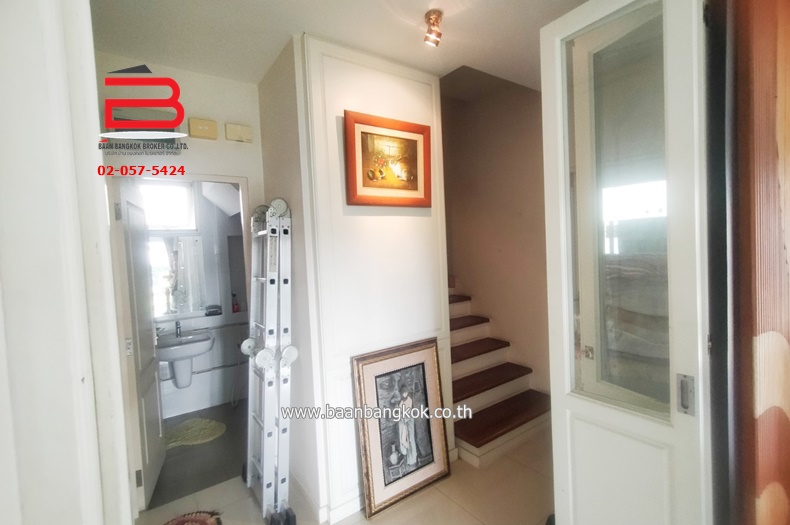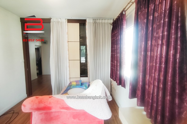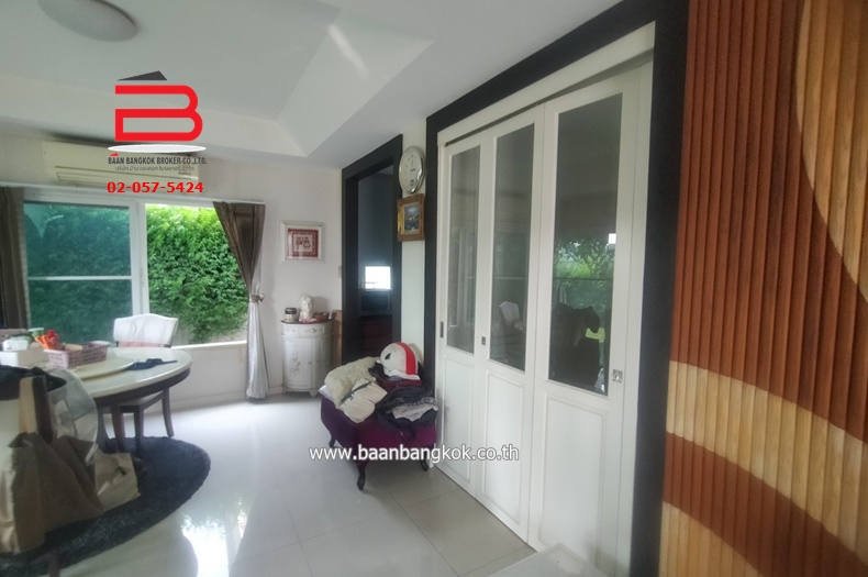 การตกเเต่ง : มีพื้นที่สวนด้านข้างบ้าน ระเบียงบ้านชั้นบนต่อเติมเป็นมุมอ่านหนังสือ ครัวบิ้วท์อินตู้สำหรับเก็บของ ตกแต่งบ้านใช้วัสดุอย่างดี ติดผ้าม่านทั้งหลัง มีปั้มน้ำ+แท็งค์น้ำ แอร์ 4 เครื่อง ภายในโครงการมีสิ่งอำนวยความสะดวก อาทิ รปภ.24ชั่วโมง,CCTV,สนามเด็กเล่น, สระว่ายน้ำ, สวนหย่อม
