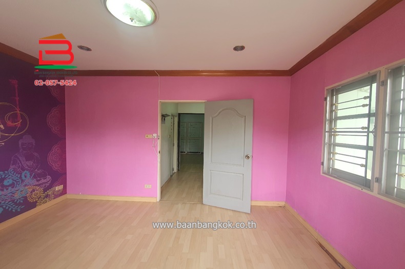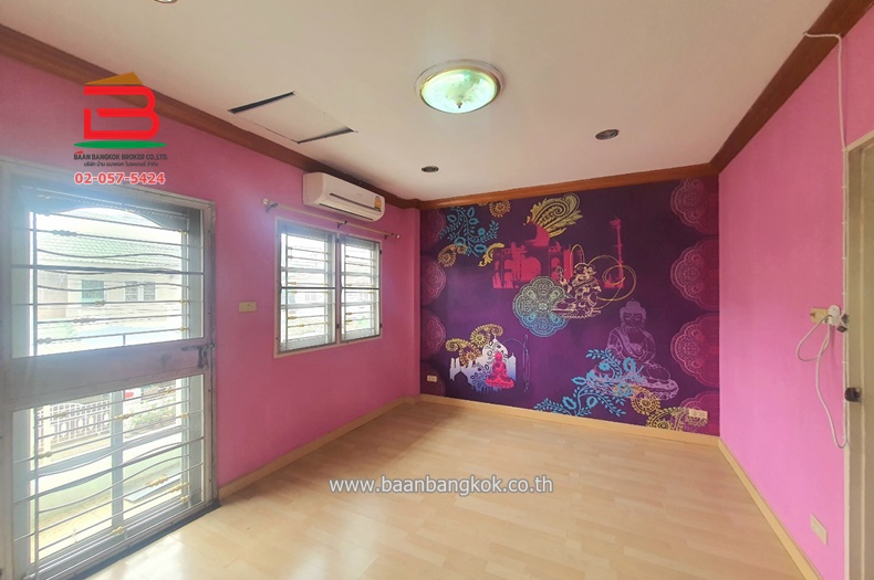 การตกแต่ง : พื้นชั้นล่างปูด้วยกระเบื้อง พื้นชั้นบนปูพื้นลามิเนต ต่อเติมด้านหน้าบ้าน ทำให้มีพื้นที่ใช้สอยมากขึ้น ติดมุ้งลวด+เหล็กดัด มีปั้มน้ำ แอร์ 2 เครื่อง สิ่งอำนวยความสะดวก อาทิ เช่น รปภ.24 ชม., สนามเด็กเล่น