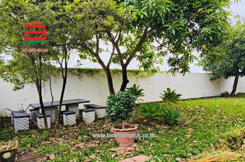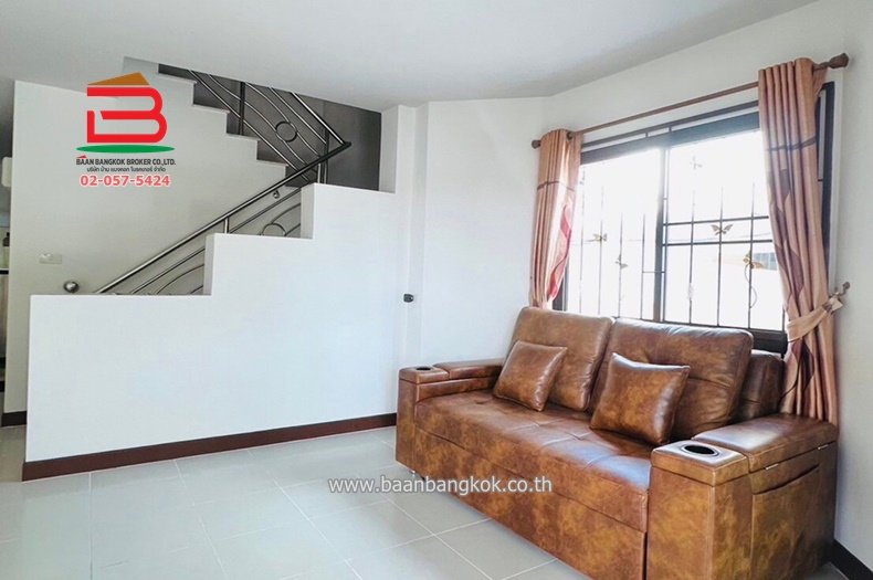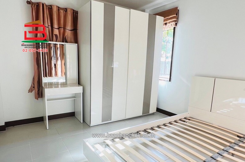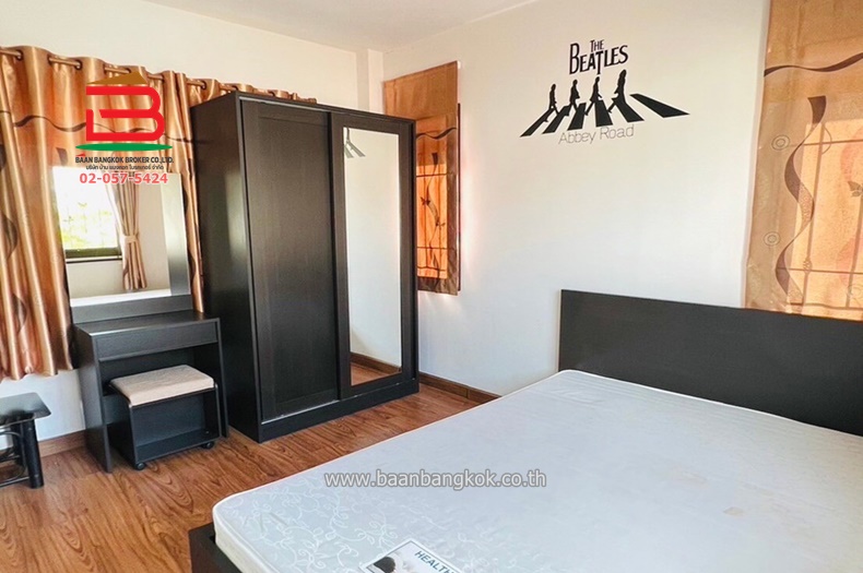 การตกเเต่ง : เฟอร์นิเจอร์บางส่วน พื้นชั้นล่างปูแกรนิตโต้ พื้นชั้บนปูลามิเนต บันไดหินอ่อน พร้อมราวบันไดอลูมิเนียม ติดมุ้งลวด+เหล็กดัด มีปั้มน้ำ+แท็งค์น้ำ แอร์ 3 ตัว ต่อเติมปูพื้นกระเบื้องรอบบ้าน ภายในหมู่บ้านมีสาธารณูปโภคครบครัน อาทิ รปภ.24ชั่วโมง, CCTV, สนามเด็กเล่น