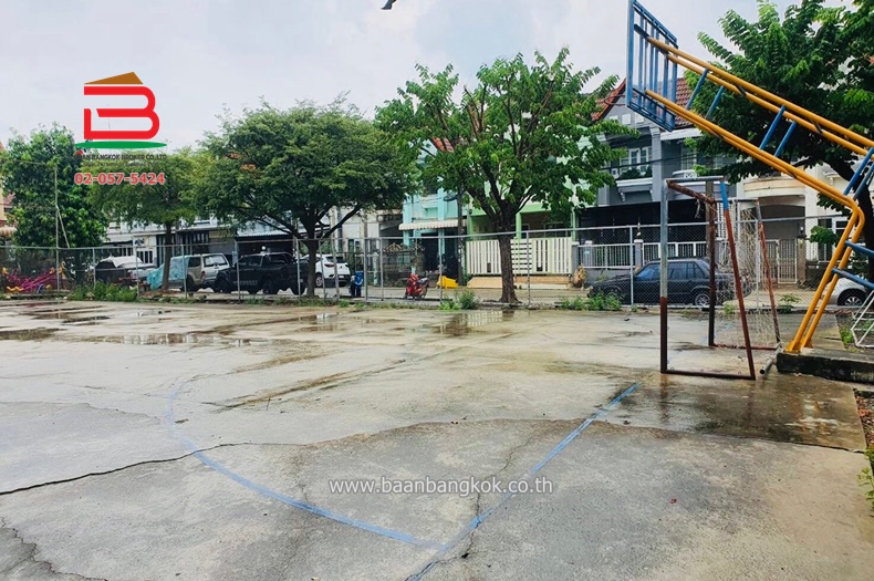 การตกแต่ง : พื้นบ้านชั้นล่างปูกระเบื้อง ชั้นบนปูปาร์เก้ ต่อเติมห้องด้านล่าง 1 ห้อง ของค่อนข้างเยอะ อาจะต้องปรับปรุงสี ติดเหล็กดัด+มุ้งลวด แอร์ 2 เครื่อง ภายในโครงการมีสาธารณูปโภค อาทิ รปภ.24 ชม.,สนามเด็กเล่น
