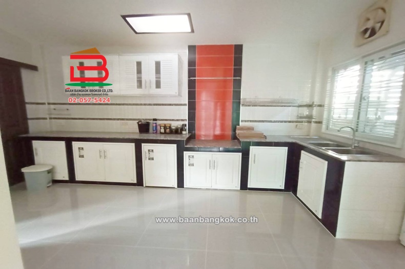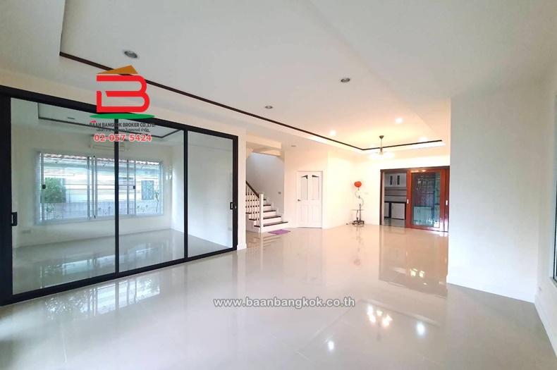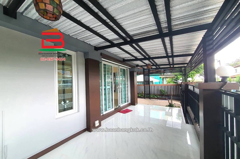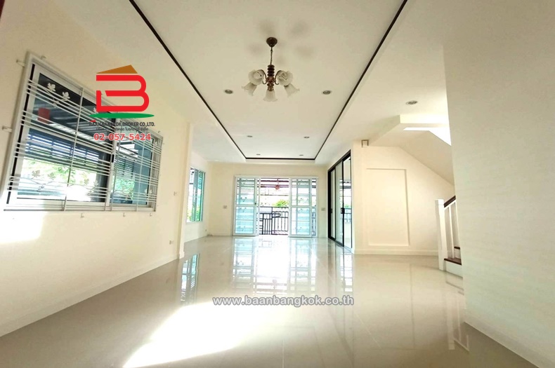 การตกแต่ง : พื้นล่างปูแกรนิตโต้ พื้นบนปูปาเก้ ห้องครัวบิวท์อิน ต่อเติมหลังคาโรงจอดรถและปูกระเบื้องลานจอดรถ ต่อเติมเทอเรชหน้าบ้าน ต่อเติมห้องพระชั้นลอยและระเบียงห้องนอนด้านหลัง ติดเหล็กดัด แอร์ 2 เครื่อง มีสิ่งอำนวยความสะดวก อาทิ รปภ. 24 ชม., CCTV, สนามเด็กเล่น, สระว่ายน้ำ