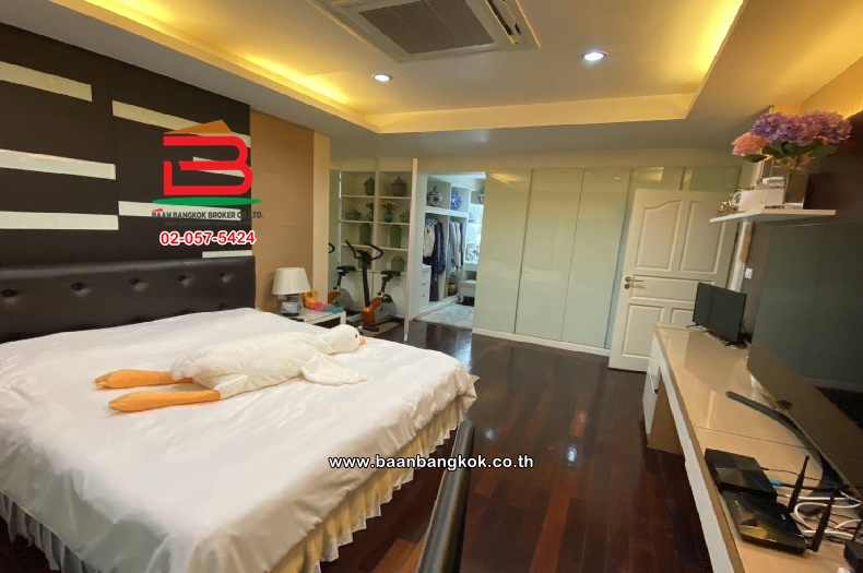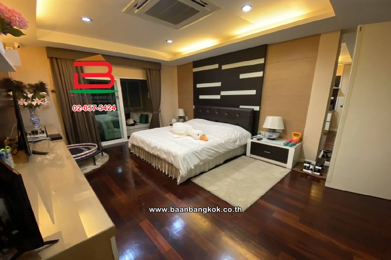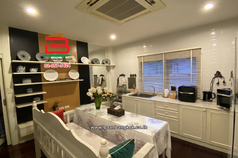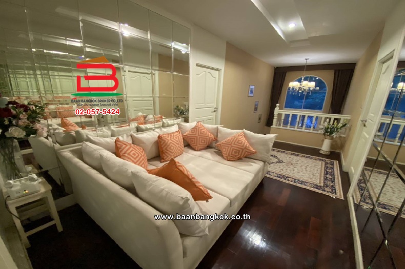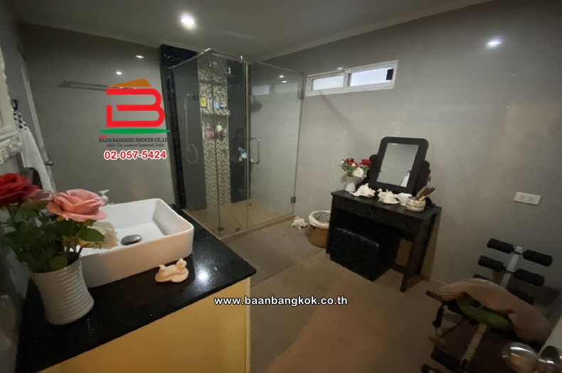 การตกแต่ง : ชั้น 1 : ห้องทำงาน/ห้องนอน พร้อมห้องน้ำ แบบ 2 อ่างล้างหน้า และโซนห้องรับแขก มีห้องน้ำ และห้องอาบน้ำในตัว ครัวนอกติดห้องนอนแม่บ้าน และห้องน้ำส่วนตัวนอกบ้าน ชั้น 2 : ห้องนอนใหญ่ พร้อม walk in closet ผ่อนคลายด้วยโซฟาขนาดใหญ่บนพื้นที่ระเบียงที่กว้างขวาง และลู่ส่งออกกำลังกายขนาดใหญ่ ห้องนอนที่ 2 พร้อมห้องน้ำในตัว ห้องครัวบน พร้อมเตาไฟฟ้า และเครื่องใช้ไฟฟ้าทุกชนิด พร้อมเข้าอยู่ พร้อมแอร์ 4 ทิศทาง (ทุกห้องมี central air รวม 8 ตัว)