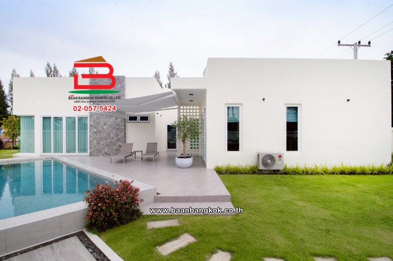 ประเภททรัพย์สิน : บ้านเดี่ยวโครงการใหม่ Palm Springs Luxury Pool Villa ตั้งอยู่ใจกลางธรรมชาติ ในซอยหัวหิน 112 ซึ่งตอนนี้บ้านแบบ 3 ห้องนอน 3 ห้องน้ำ ขนาดพื้นที่ใช้สอย 270 ตร.ม พร้อมสระว่ายน้ำส่วนตัว มีการจัดตกแต่งเสร็จเรียบร้อย ดีไซน์ตัวบ้านมีความมินิมอล จากรูปทรงและสีที่ใช้นั้นมีความสวยคลีนเรียบง่ายและทันสมัย เป็นการออกแบบแปลนบ้านที่มีความยูนีค ใส่ใจทุกดีเทล ตัวบ้านตั้งอยู่ใจกลางธรรมชาติ ผู้อยู่อาศัยจะรู้สึกได้ถึงบรรยากาศที่ดี เงียบสงบ ได้สัมผัสถึงการพักผ่อนที่มีคุณภาพ