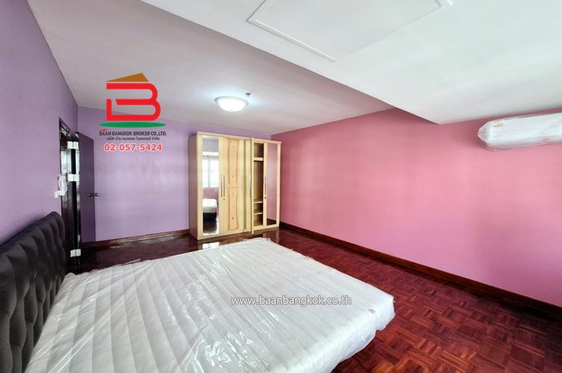 การตกแต่ง : พื้นปูด้วยกระเบื้องและพื้นไม้ปาร์เก้ ภายในติดมุ้งลวด+เหล็กดัด พร้อมแอร์ 2 เครื่อง ภายในโครงการมีสิ่งอำนวยความสะดวก รปภ.24ชม., CCTV, สระว่ายน้ำ