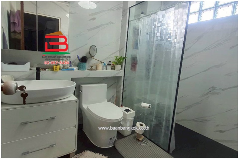 การตกแต่ง : เฟอร์นิเจอร์บางส่วน ครัวบิวท์อินกว้างขวางมาก มีห้องน้ำขนาดกว้างพร้อมอ่างอาบน้ำ แอร์ 11 เครื่อง มีปั้มน้ำ+แท็งค์น้ำ มีบริเวณสวน ต้นไม้ใหญ่ ทำให้บริเวณบ้านร่มรื่น เย็นสบาย สามารถปลูกสร้างบ้านเพิ่มได้ สิ่งอำนวยความสะดวก อาทิเช่น รปภ.24 ชม., CCTV, สนามเด็กเล่น