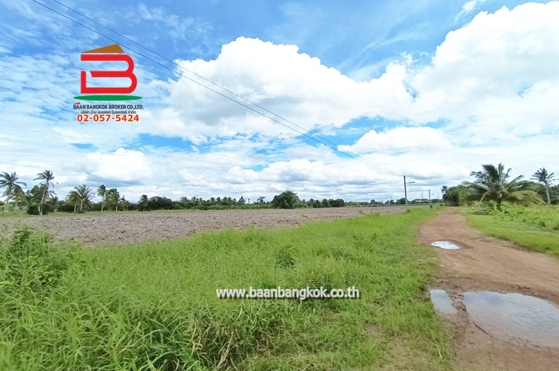 ประเภททรัพย์สิน : ที่ดิน ปลูกแซมสลับด้วย ต้นยูคาลิปตัส,ต้นอ้อย และมันสําปะหลัง เพื่อรักษาหน้าดิน เป็นที่ดินแปลงสวย ติดถนนราดยาง 3 ด้าน เหมาะสำหรับทำ โกดังเก็บสินค้า หรือโรงงาน