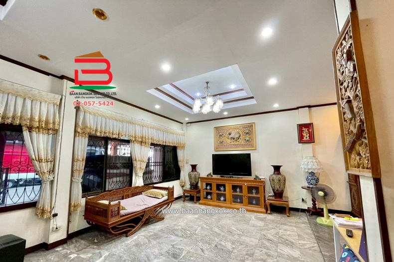 การตกแต่ง : พื้นล่างปูด้วยกระเบื้องลายหินอ่อน พื้นบนปูด้วยปาร์เก้ ภายในติดผ้าม่าน+มุ้งลวด+เหล็กดัด มีปั๊มน้ำ-แท็งค์น้ำ แอร์ 2 ตัว เครื่องทำน้ำอุ่น 1 เครื่อง เครื่องกรองน้ำ 1 เครื่อง ต่อเติมโรงจอดรถหน้าบ้านและระเบียงหลังบ้าน