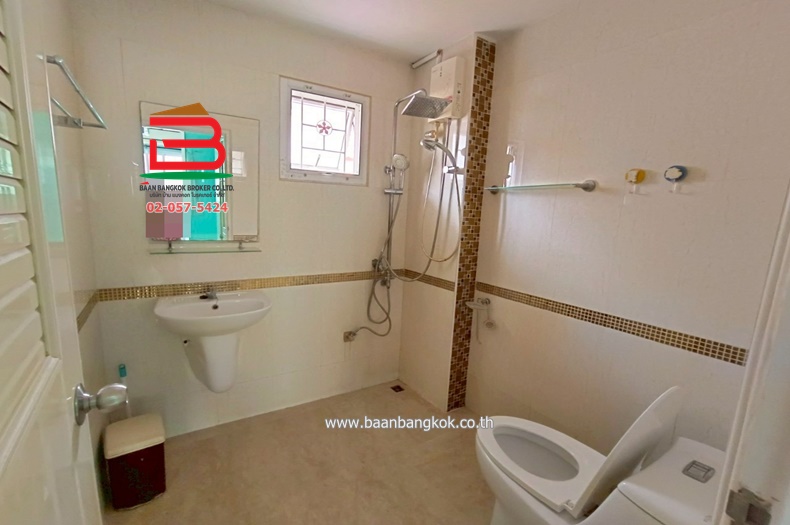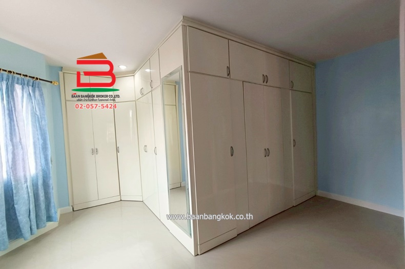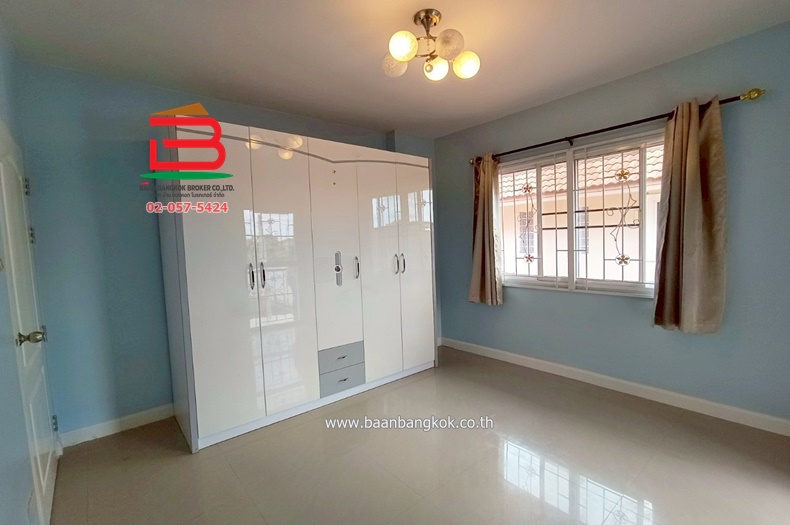 การตกแต่ง : พื้นปูกระเบื้องแกรนิตโต้ ตู้เสื้อผ้าบิวท์อินห้องนอนใหญ่ ติดมุ้งลวด+เหล็กดัด+ผ้าม่าน มีปั้มน้ำ+แท็งค์น้ำ แอร์ 5 ตัว ตัวบ้านต่อเติมเต็มพื้นที่และต่อเติมโรงจอดรถ มีสิ่งอำนวยความสะดวก อาทิ เช่น รปภ.24 ชม., CCTV, สนามเด็กเล่น