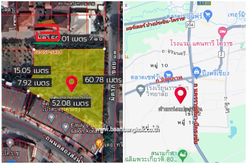 ประเภททรัพย์สิน : ที่ดินเปล่า ถมแล้ว แปลงมุม ติดถนน 2 ด้าน พื้นที่สีชมพู มีกำแพงรอบพื้นที่ หน้ากว้าง 60*50 เมตร หันหน้าไปทางทิศตะวันออก ถนนหน้าแปลงกว้าง 6 เมตร ที่ดินตั้งอยู่ในตัวเมืองนครราชสีมา ทำเลดี เดินทางเข้าออกสะดวก เหมาะทำโครงการบ้านพักอาศัย อพาร์ทเม้นท์หอพัก บริษัท,สำนักงานออฟฟิศ โกดังเก็บสินค้า