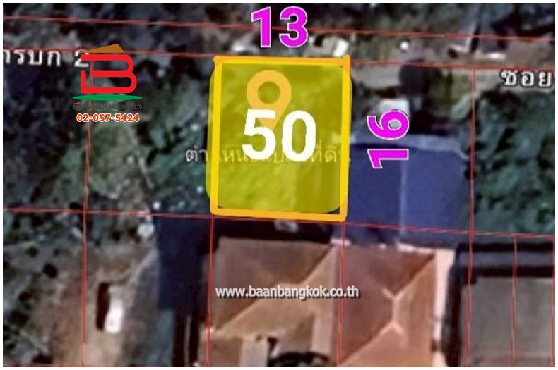 ประเภททรัพย์สิน : ที่ดินเปล่า เป็นรูปสี่เหลี่ยมผืนผ้า พื้นที่สีเหลือง หน้ากว้าง 13 เมตร ลึก 19 เมตร หันหน้าไปทางทิศหนือ เหมาะปลูกที่พักอาศัย ใกล้สถานที่สำคัญและสิ่งอำนวยความสะดวก การเดินทางเข้า-ออกหลายช่องทาง