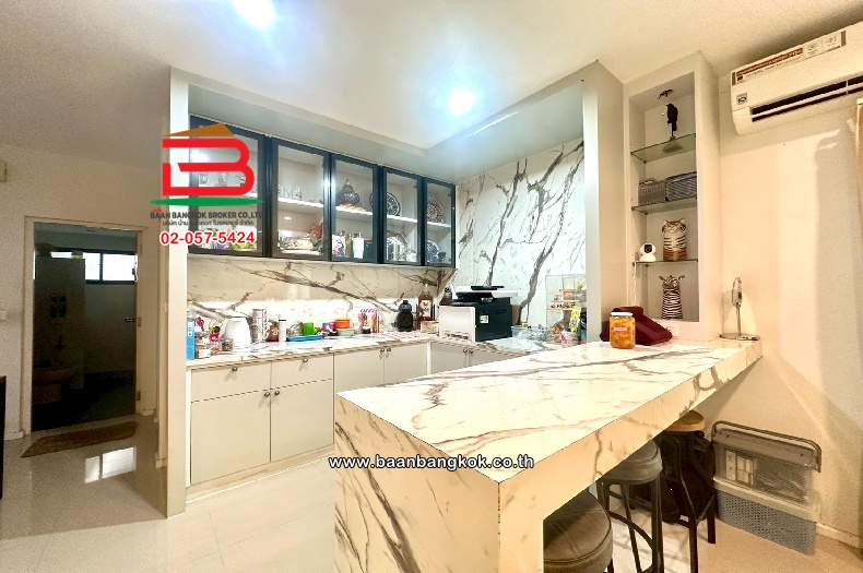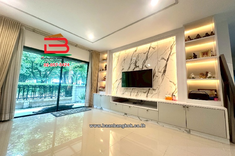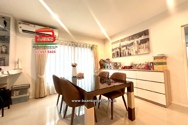 การตกเเต่ง : บ้านพร้อมเข้าอยู่ พร้อมด้วยเฟอร์ฯ Build in แอร์ 6 เครื่อง มีพื้นที่รอบบ้าน ต่อเติมห้องครัวไทย มีปั้มน้ำ-แท็งค์น้ำ เป็นบ้านเดี่ยวสไตล์โมเดิร์น ที่เน้นดีไซน์โป่งโล่ง ฟังก์ชันบ้านครบครันด้วย ห้องอเนกประสงค์ และรองรับการขยายครอบครัว จุดเด่น คือทำเลศักยภาพ ใกล้ทางด่วนวงแหวนกาญจนาภิเษก และถนนสายหลัก รวมถึงสิ่งอำนวยความสะดวกครบครัน เช่น คลับเฮาส์, ฟิตเนส, สระว่ายน้ำ และสวนสาธารณะขนาดใหญ่ ระบบรักษาความปลอดภัยมีมาตรฐานสูงเป็นแบบดับเบิ้ล Security และสัญญาณกันขโมยในบ้าน