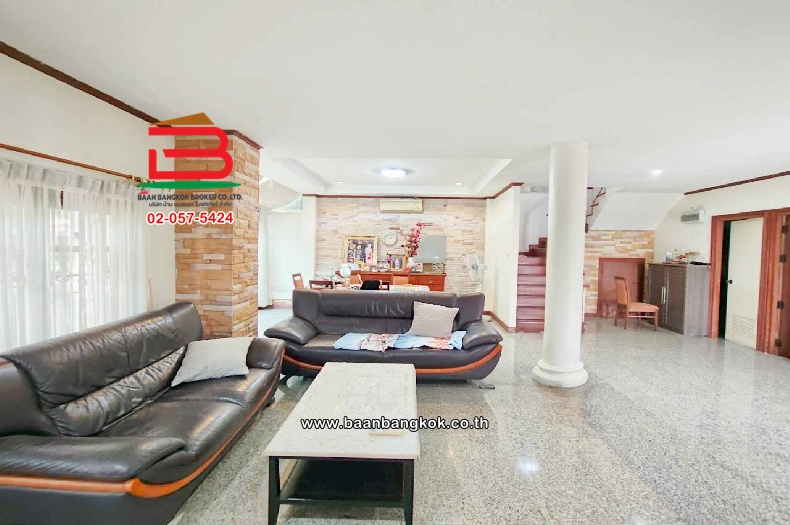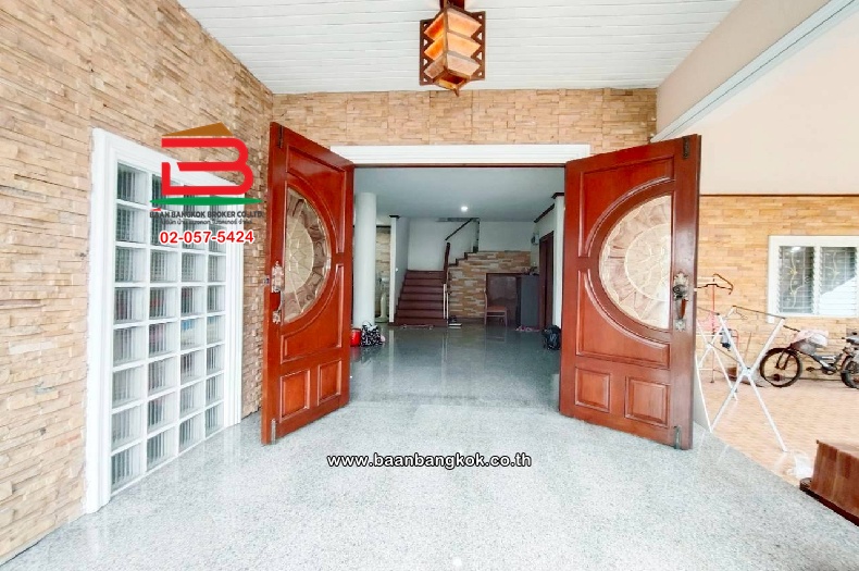 การตกแต่ง : บ้านหรูสไตล์ผู้ดีเก่า ขายพร้อม เฟอร์นิเจอร์บางส่วน พื้นชั้นล่างปูพื้นหินแกรนิต ติดผ้าม่านหลุยส์ พร้อมแอร์ 4 ตัวเครื่อง โซนห้องน้ำ มีเครื่องทำน้ำอุ่น 1 เครื่อง พร้อมปั้มน้ำ-แทงค์น้ำ พื้นชั้นบนปูด้วยปาร์เก้ไม้แท้ บันไดเป็นไม้แท้และแข็งแรงมาก และมีพื้นที่เหลือด้านข้าง สามารถสร้างบ้านได้อีก 1 หลัง หรือทำเป็นโรงจอดรถ, home office, ที่พักคนงาน, ที่เก็บสต๊อกสินค้า เนื้อที่กว้างขวางมาก รั้วหน้าบ้านปูด้วยแผ่นหิน ตกแต่งสวยงาม บ้านใกล้สวนสาธารณะของหมู่บ้าน บรรยากาศดี เพื่อนบ้านน่ารัก สามารถทำประโยชน์ใช้สอยได้เยอะ คุ้มค่ามากๆ เนื้อที่ : 108.3 ตร.วราคาขาย : 5,900,000 บาท