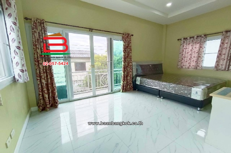 ติดผ้าม่าน พร้อมเตียง-ที่นอน 6 ฟุต อย่างดี 2 ชุด (มีพลาสติกหุ้มใหม่ยังไม่ได้แกะ) พร้อมแอร์ 1 เครื่อง ต่อเติมเต็มพื้นที่ ภายในบริเวณบ้านเงียบสงบร่มรื่นน่าอยู่อาศัยเป็นแหล่งชุมชนฉลองกรุง มีห้างสรรพสินค้าแหล่งของกินมากมาย การเดินทางเข้าออกได้หลายช่องช่องทาง