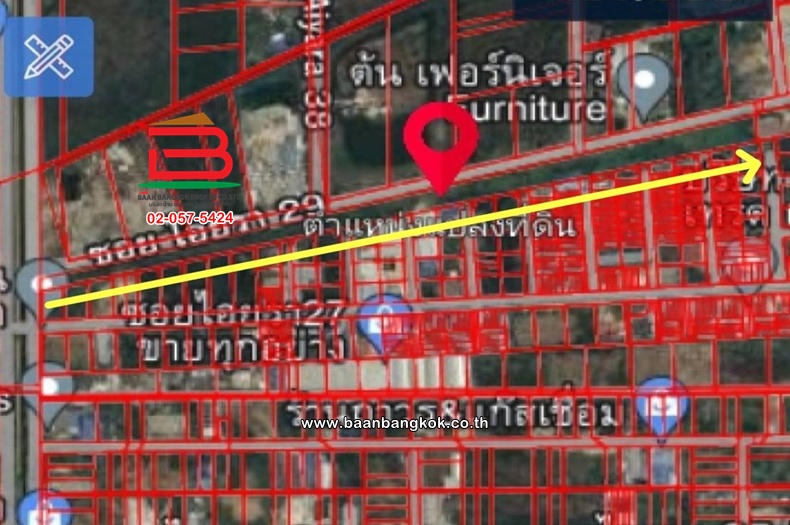 ประเภททรัพย์สิน : ที่ดินเปล่า แปลงสวย ติดถนน 2 ด้าน หน้ากว้าง 580 เมตร ลึก 20 เมตร ด้านหน้าติดถนนใหญ่ กว้าง 11 เมตร อีกด้านติดถนนซอยไอยรา 29 เป็นพื้นที่สีเหลือง เหมาะสำหรับสร้างบ้านพักอาศัย, ทาวน์เฮาส์, ที่เก็บสินค้า หรือซื้อไว้เก็งกำไร