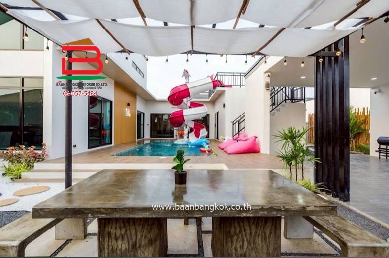 : ขายรีสอร์ทพลูวิลล่า พร้อมอยู่ มี 4 ห้องนอน 5 ห้องน้ำ 1 ห้องนั่งเล่น 1 ห้องคาราโอเกะ 2-3 คันที่จอดรถ