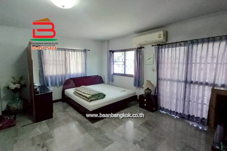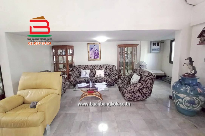 การตกแต่ง :  พื้นห้องทุกชั้น ปูด้วยกระเบื้องลายหินอ่อนแท้ ส่วนฝ้าเพดานจะเป็นฝ้าเรียบ ภายในบ้านติดตั้งเหล็กดัดมุ้งลวดพร้อมผ้าม่านให้เรียบร้อยภายในห้องครัวจะต่อเติมเคาน์เตอร์ให้อย่างดีสวยงาม ** แถมแอร์ให้ 5 เครื่องพร้อมปั๊มน้ำและแทงค์** น้ำฟังก์ชันครบประกอบด้วย 5 ห้องนอน 5 ห้องน้ำ 1 ห้องรับแขกใหญ่ 1 ห้องครัวสามารถรองรับงานจัดเลี้ยงมิตติ้งปาร์ตี้ปิ้งย่างชาบูได้ เฟอร์นิเจอร์ Built in ให้ทั้งหลังตัวบ้านยกสูงกว่าพื้นถนน มีพื้นที่บริเวณโซนหน้าบ้าน และข้างบ้านสามารถจัดแต่ง เป็นมุมพักผ่อนหรือจัดแต่งไม้ดอกไม้ประดับสวยงามได้ พื้นหน้าบ้านลงเสาเข็มไม่ทรุด สามารถจอดรถได้ถึง 3 คัน บ้านหลังนี้สวยสะอาดเจ้าของดูแลอย่างดีมาก เหมาะสำหรับกลุ่มครอบครัวขนาดใหญ่ที่กำลังหาบ้านพักอาศัยปลอดส่วนตัวราคาถูกหลังนี้ตอบโจทย์ area ที่ตั้งทรัพย์อยู่ในแหล่งชุมชนที่เจริญแวดล้อมไปด้วย ห้างสรรพสินค้าชั้นนำ ศูนย์หน่วยงานราชการต่างๆ การเดินทาง เข้า-ออกสะดวกสบายหลายเส้นทาง " ทำเลดีน่าลงทุน "