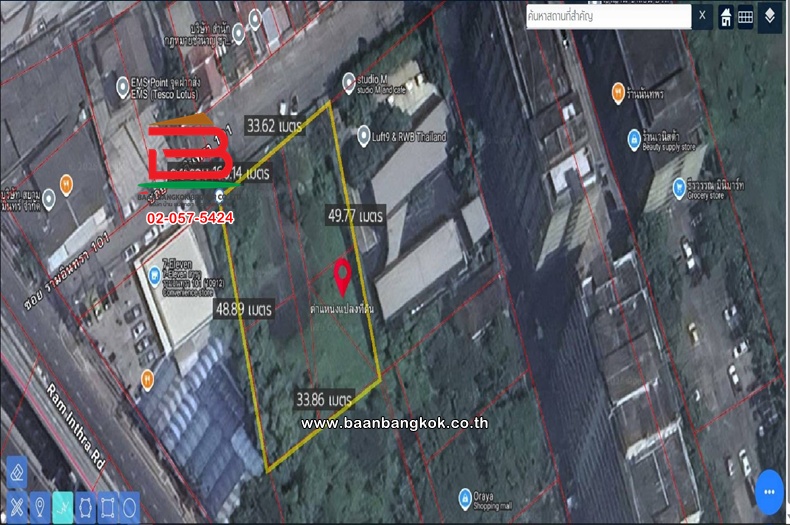 รหัสทรัพย์ 11552 : ที่ดินเปล่า ซอยรามอินทรา 101 *ค่าพิกัด : 13.821387736,100.68138145