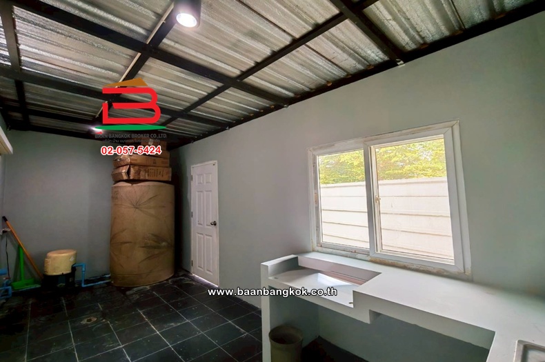 การตกแต่ง : พื้นที่ใช้สอย 110 ตร.ม. บ้านหลังนี้อยู่หน้าโครงการห่างจาก ป้อมรปภ. 200 เมตร บ้านหันหน้าทิศตะวันตก ต่อเติมห้องอเนกประสงค์เพิ่ม 1 ห้อง แถมแอร์ 4 เครื่อง พร้อมปั๊มน้ำ ถังเก็บน้ำ