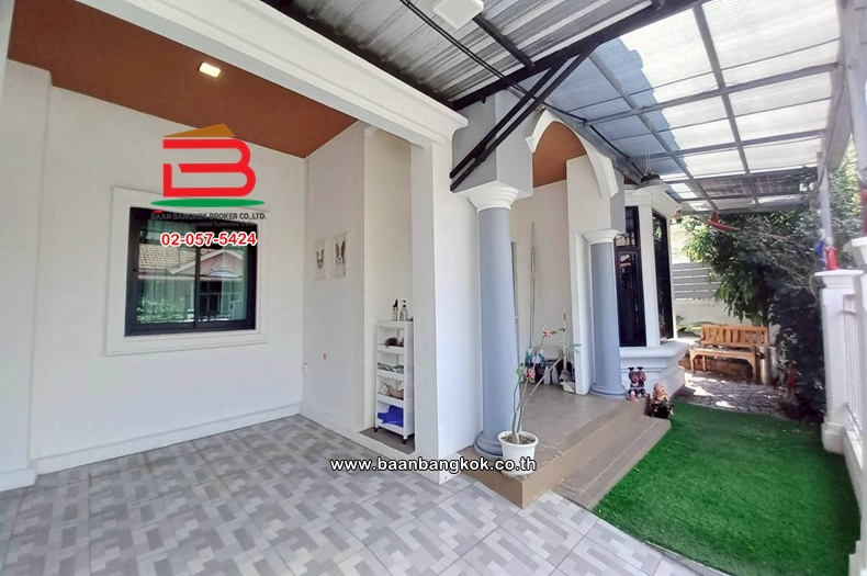 การตกแต่ง : บ้านเดี่ยว 1 ชั้นต่อเติมตกแต่งสวยงามพร้อมอยู่ ฟังก์ชั่นประกอบด้วย 3 ห้องนอน 2 ห้องน้ำ 1 ห้องครัวพื้นห้องชั้นล่างกปูด้วยลามิเนตสวยงามสะอาดตาฝ้าเพดานเป็นฝ้าเรียบติดโคมไฟให้สวยงามโซนหน้าบ้านจะปูกระเบื้องให้เรียบร้อยแล้ว" มีมุมนั่งเล่นพักผ่อน ตามอัธยาศัย " หลังบ้านต่อเติมห้องครัวพร้อมเคาน์เตอร์ให้อย่างดีพิเศษหลังคาบนบ้านติดตั้งแผงโซล่าเซลล์ แถมปั๊มน้ำและแทงค์น้ำให้ บ้านสวยพร้อมอยู่ร่มรื่นเย็นสบาย ทำเลดีเพื่อนบ้านน่ารักอัธยาศัยดีสิ่งอำนวยความสะดวกอาทิเช่น รปภ.ตลอด 24 ชั่วโมงสนามเด็กเล่นให้เลียโลเคชั่นอยู่ในแหล่งชุมชนหาซื้อของทานได้ง่ายใกล้ตลาดนัดชุมชนห้างสรรพสินค้าศูนย์หน่วยงานราชการต่างๆการเดินทางเข้าออกสะดวกสบายหลายเส้นทาง " ทรัพย์สวยทำเลดีน่าลงทุน "
