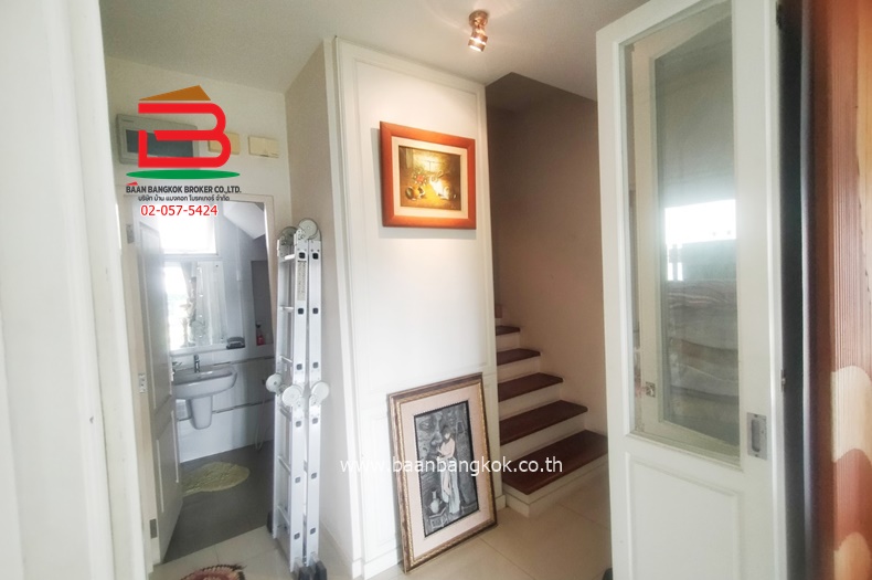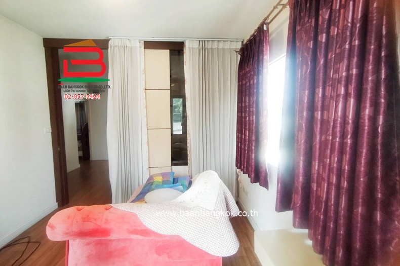 การตกเเต่ง : มีพื้นที่สวนด้านข้างบ้าน ระเบียงบ้านชั้นบนต่อเติมเป็นมุมอ่านหนังสือ ครัวบิ้วท์อินตู้สำหรับเก็บของ ตกแต่งบ้านใช้วัสดุอย่างดี ติดผ้าม่านทั้งหลัง มีปั้มน้ำ+แท็งค์น้ำ แอร์ 4 เครื่อง ภายในโครงการมีสิ่งอำนวยความสะดวก อาทิ รปภ.24ชั่วโมง,CCTV,สนามเด็กเล่น, สระว่ายน้ำ, สวนหย่อม